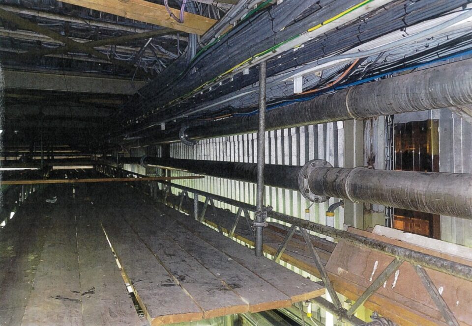 Binnen het magazijn bevond zich tegen het plafond een houten stellingconstructie die toegang geeft tot elektrische kabels en leidingen. Deze tijdelijke constructie werd vervangen door definitieve duurzame GVK-roosters.
