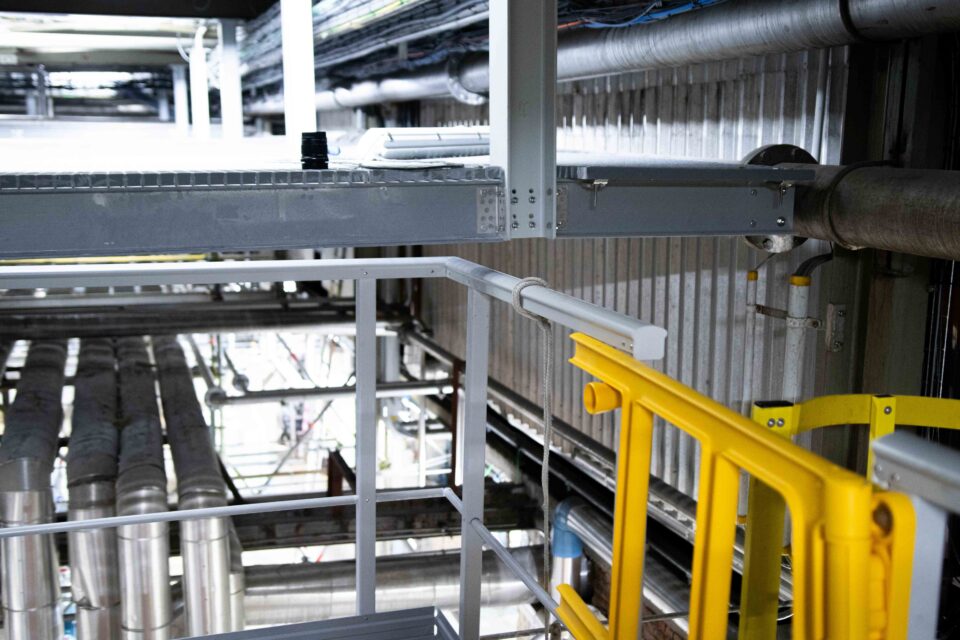 - Ons team plaatste een definitieve vloer in GVK-roosters (glasvezelversterkte kunststof) met antislip afwerking.
