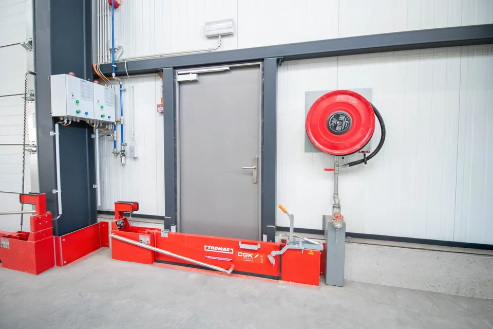 We installeerden halfautomatische vloeistofbarrières die specifieke zones vloeistofdicht afsluiten.