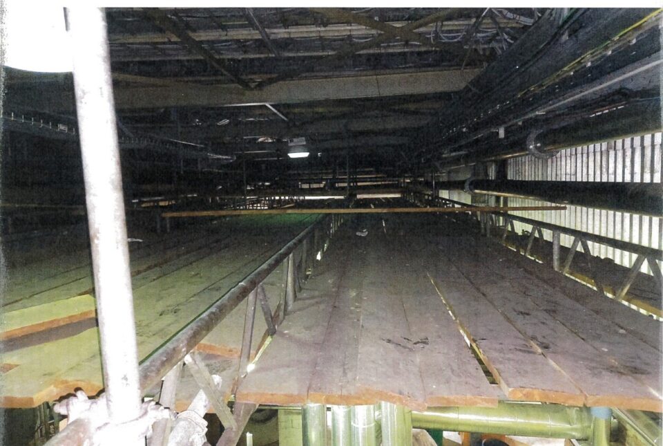 Binnen het magazijn bevond zich onder het dak een stelling met daarop een houten plankenvloer, deze werd vervangen door een constructie met GVK-profielen en een GVK-roostervloer.