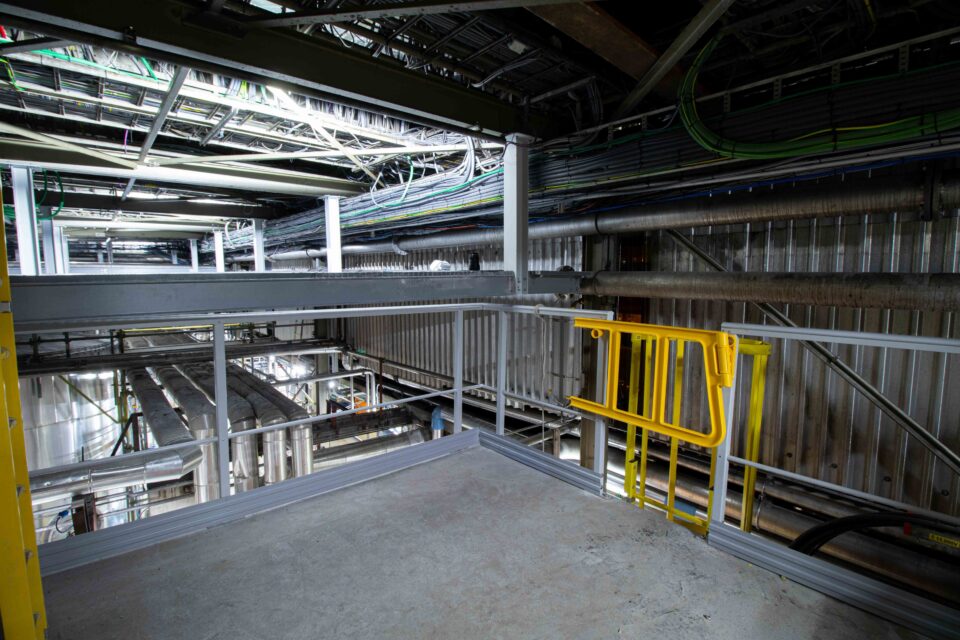- Onze CGK'ers plaatsten een definitieve constructie met GVK-profielen waarop de nieuwe vloer met GVK-roosters werd gemonteerd.