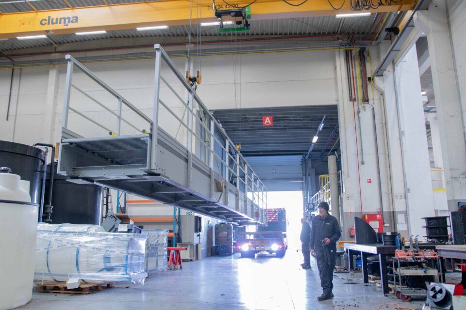 De hele brug werd voorbereid, samengesteld en voorgemonteerd in ons CGK-atelier in Gullegem. Dit minimaliseerde de montagetijd op locatie en garandeerde een hoge kwaliteitscontrole vanaf de start. - Modulaire Lifeladder Thor®