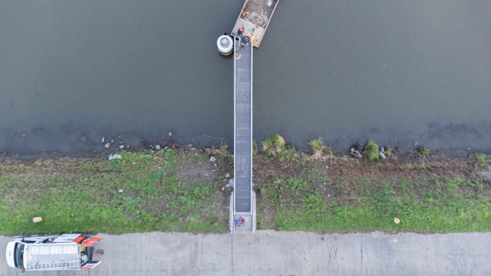 Aan de brug werd een nieuwe modulaire LifeLadder Thor® toegevoegd. Dit ladderontwerp is 'oersterk' en bestaat uit verwisselbare segmenten die eenvoudig ter plaatse vervangen kunnen worden bij slijtage of schade, zonder de gehele ladder te moeten vernieuwen. Dit verhoogt de levensduur en verlaagt de onderhoudskosten. - Transport naar de site